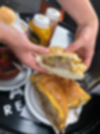 For some reason we decide to then eat a massive gyoza, which tastes great but really mingles with the sandwich grease already down there and represents a proverbial nail in the coffin of our stomachs.